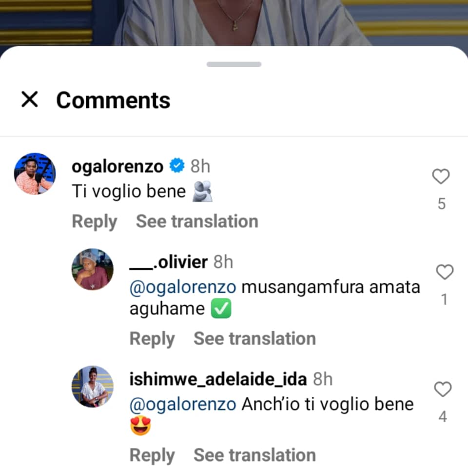 Umunyamakuru Lorenzo Christian Musangamfura anyuze ahatangirwa ibitekerezo kuri ayo mafoto Muhayimpundu Ishimwe Adelaide yari amaze gutangaza maze yandikamo ijambo ryo mu Gitaliyani rigira riti “Ti voglio Bene” mu kinyarwanda bisobanuye “Ndagukunda”, mu gusubiza iki gitekerezo cyari gitanzwe na Lorenzo, Adelaide nawe ntiyagiye kure y’ibyo Lorenzo yari amaze kumubwira nawe yamusubije mu Gitaliyani agira ati “Ach’io ti voglio Bene” mu kinyarwanda bisobanuye “Na njye ndagukunda”.
